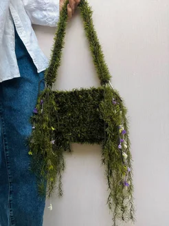 Сумка через плечо пушистая с бахромой "Цветущий мох"