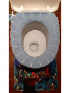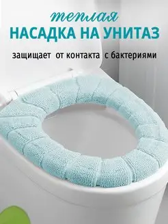 Мягкая накидка на сиденье на унитаз Теплый чехол. Синий