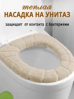 Мягкая накидка на сиденье на унитаз Теплый чехол. кремовый