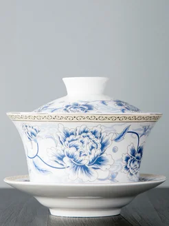 Гайвань большая "Пион с позолотой" - керамика - 250 мл