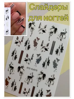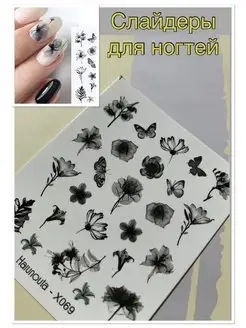 Водные наклейки слайдеры для ногтей цветы бабочки листья