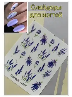 Слайдеры, водные наклейки для ногтей, цветы, лаванда, лето