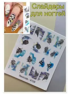 Слайдеры, водные наклейки для ногтей листья, роспись, мрамор