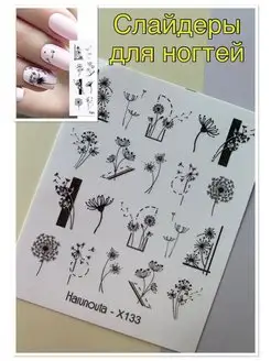 Слайдеры, водные наклейки для ногтей цветы, одуванчики