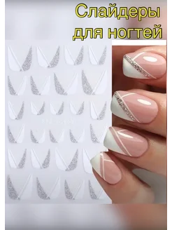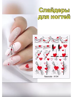 Слайдеры для ногтей, наклейки сердечки френч стиль