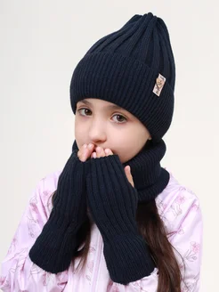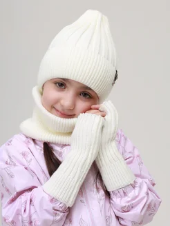 Шапка зимняя бини со снудом и митенками