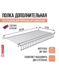 Полка сетчатая борт вниз на стеллаж для рассады 600*230 мм