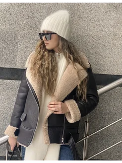 Дубленка авиатор короткая оверсайз зимняя пилот