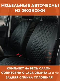 Чехлы экокожа для Лада Гранта с 2018 задняя спинка сплошная