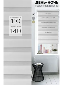 Рулонные штора День-Ночь 110х140см, зебра белая