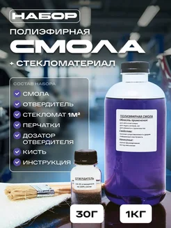 Смола полиэфирная 1 кг, стекломат 1м2, отвердитель