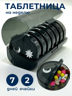 Таблетница на неделю 2 приема круглая черная