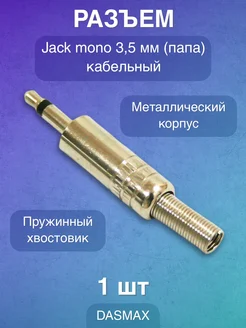 Разъём джек моно кабельный, 3.5 мм 1 шт. J50