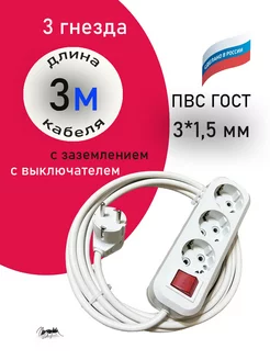 Удлинитель с выкл 3 розетки 3 метра