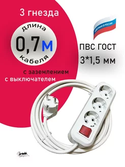 Удлинитель с выкл 3 розетки 0,7 метра