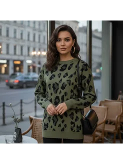 Джемпер оверсайз удлиненный леопардовый свитер