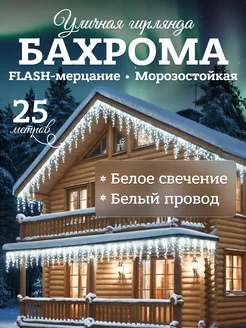 Гирлянда уличная бахрома 25 м белая