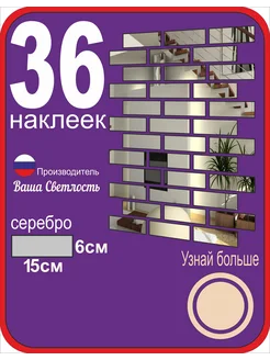 Зеркальные наклейки на стену 72 шт кирпичики 15×6 см декор