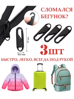 Пуллеры, бегунки, собачки для молнии 3 шт