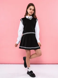 Школьный форма юбка с жилетом