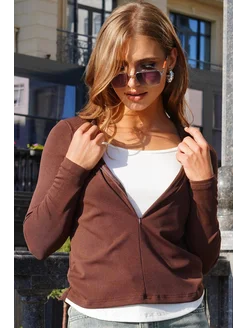 Лонгслив двухслойный y2k для девочек подростков