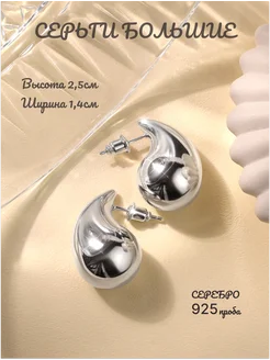 Серьги пусеты-капли BOTTEGA-VENETA крупные серебро 925