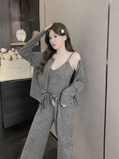 Пижама тройка. Комплект с брюками, халатом и топом