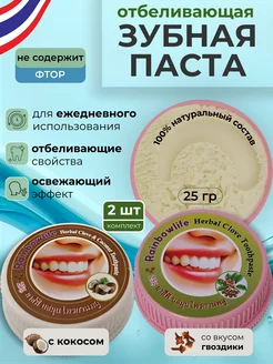 Тайская зубная паста отбеливающая без фтора 25 г, 2 шт