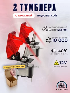 2 Тумблера автомобильных 12V, 20A, с красной подсветкой