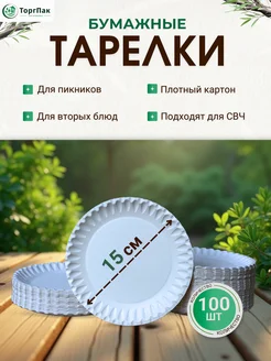 Бумажные тарелки для десертов 15 см 100 шт