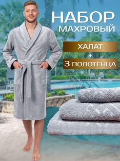 Банный набор Халат махровый + два полотенца 130x70 и 50x90
