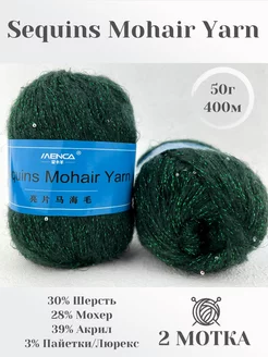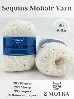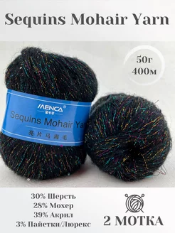 Тонкая полушерстяная пряжа с мохером, пайетками и люрексом