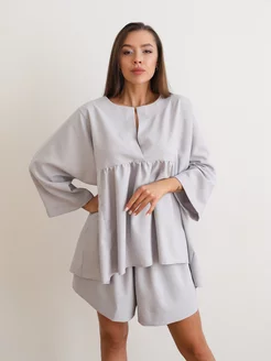 Костюм домашний с шортами и рубашкой оверсайз