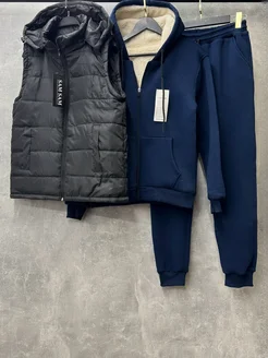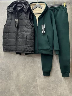 Теплый спортивный костюм на флисе с жилеткой