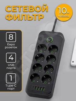 Сетевой фильтр 8 розеток 4 USB и 1 TYPE-C 10 метров