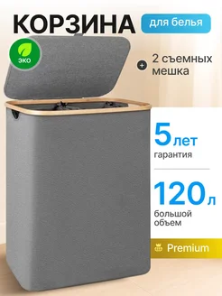 Корзина для грязного белья, с крышкой, с мешками, 120 л