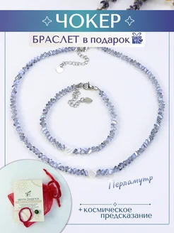 Чокер и браслет с сердцем алмазное стекло аквамарин