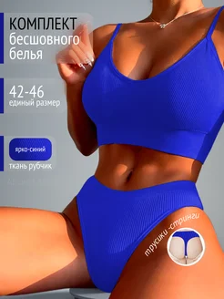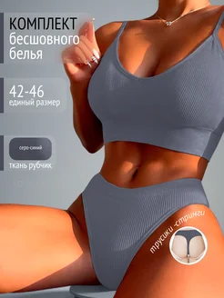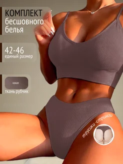Бесшовный комплект нижнее белье "в рубчик" топ и стринги