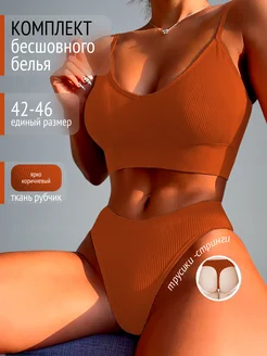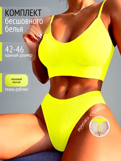 Комплект нижнего белья в рубчик бесшовный топ и слипы