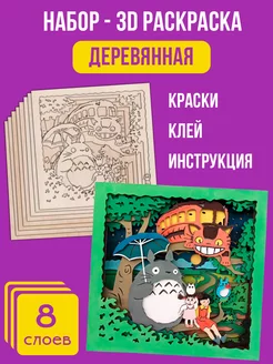 Раскраска деревянная 3д - Мой сосед Тоторо 19х19 см