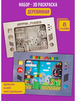 Деревянная 3д раскраска "Марио" - 8 слоев, 16х23 см