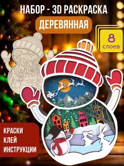 Новогодняя деревянная раскраска 3д - Снеговик 19х21 см