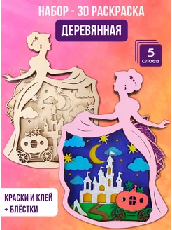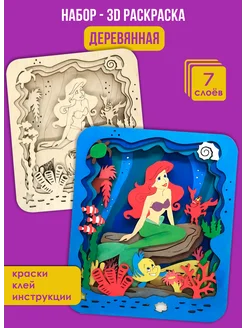 Деревянная раскраска 3д "Русалочка", 7 слоев, 17х20 см