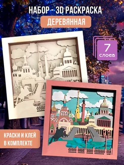 Раскраска деревянная 3д - Город - Санкт-Петербург, 20х20 см