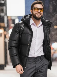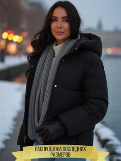 Пуховик зимний короткий оверсайз с капюшоном