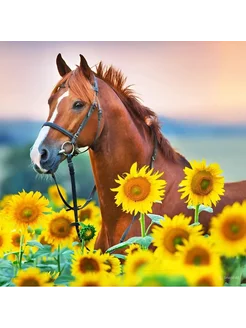 Алмазная мозаика 40х40 "Лошадь c подсолнухами"