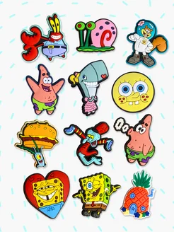 Jibbitz набор 12 штук Спанч Боб клипсы джибитсы для кроксов
