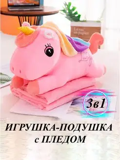 Мягкая игрушка-подушка с пледом внутри 160х100 единорог