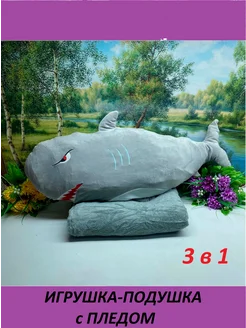Мягкая игрушка-подушка с пледом внутри 160х100 акула