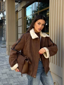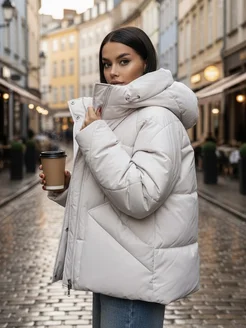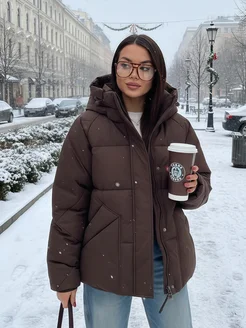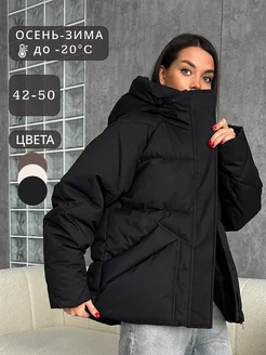 Куртка бомбер пальто оверсайз с капюшоном утепленная